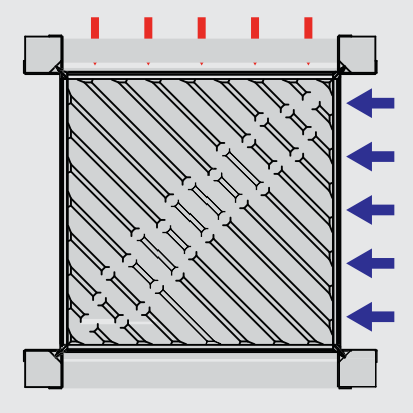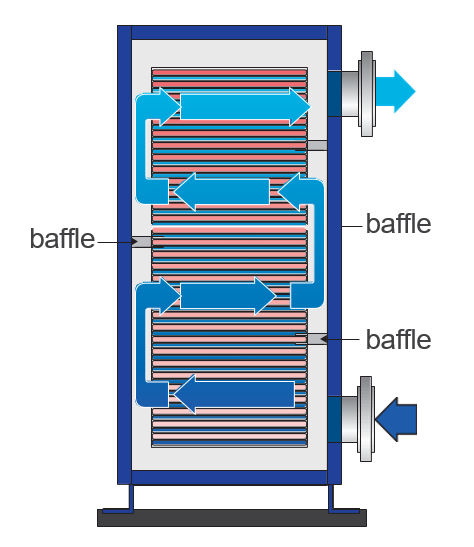 A series of baffles force the media to reverse flow direction and create a multi-pass flow pattern