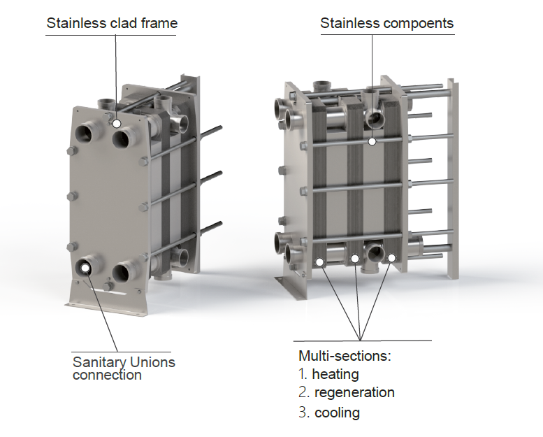 - Provides fast heating & cooling for pasteurization, sterilization, and fermentation processes. Minimizes energy consumption while ensuring precise temperature control.