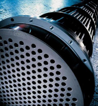 • The tube bundle of the shell-and-tube graphite heat exchanger.
